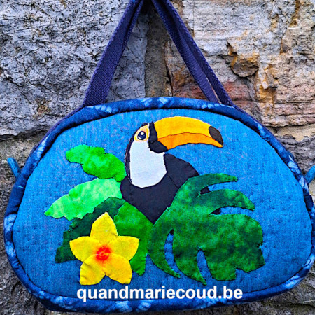 L’appliqué consiste à assembler des petits morceaux de tissu pour en faire un dessin. C’est une méthode qui se fait entièrement à la main. Les appliqués à la main sont petits, précis, beaucoup plus que les appliqués machine. Il faut des cotonnades de très grande qualité qui ne s’effilochent pas (souvent avec ce qu’on appelle le coton japonais en fil teint ). Je prélave les tissus pour plus de sûreté. Le principe de l’appliqué main consiste à découper chaque pièce une par une dans l’ordre (un peu comme un puzzle), à retourner cette petite pièce sur tout le tour sur environ 7mm et à coudre à la main la pièce dans le pli ainsi formé. Les pièces pour les petits pieds des Sunbonnet font souvent 8 millimètres sur 1 cm par exemple. Ensuite, tout le tour du dessin formé par l’appliqué (par exemple un petit personnage et un arbre, un bonhomme de neige, un escargot….) est au cousu à petits points sur du molleton pour permettre le quilting à la main (faire tenir la pièce sur le molleton) et enfin, la troisième couche sert de doublure intérieure.